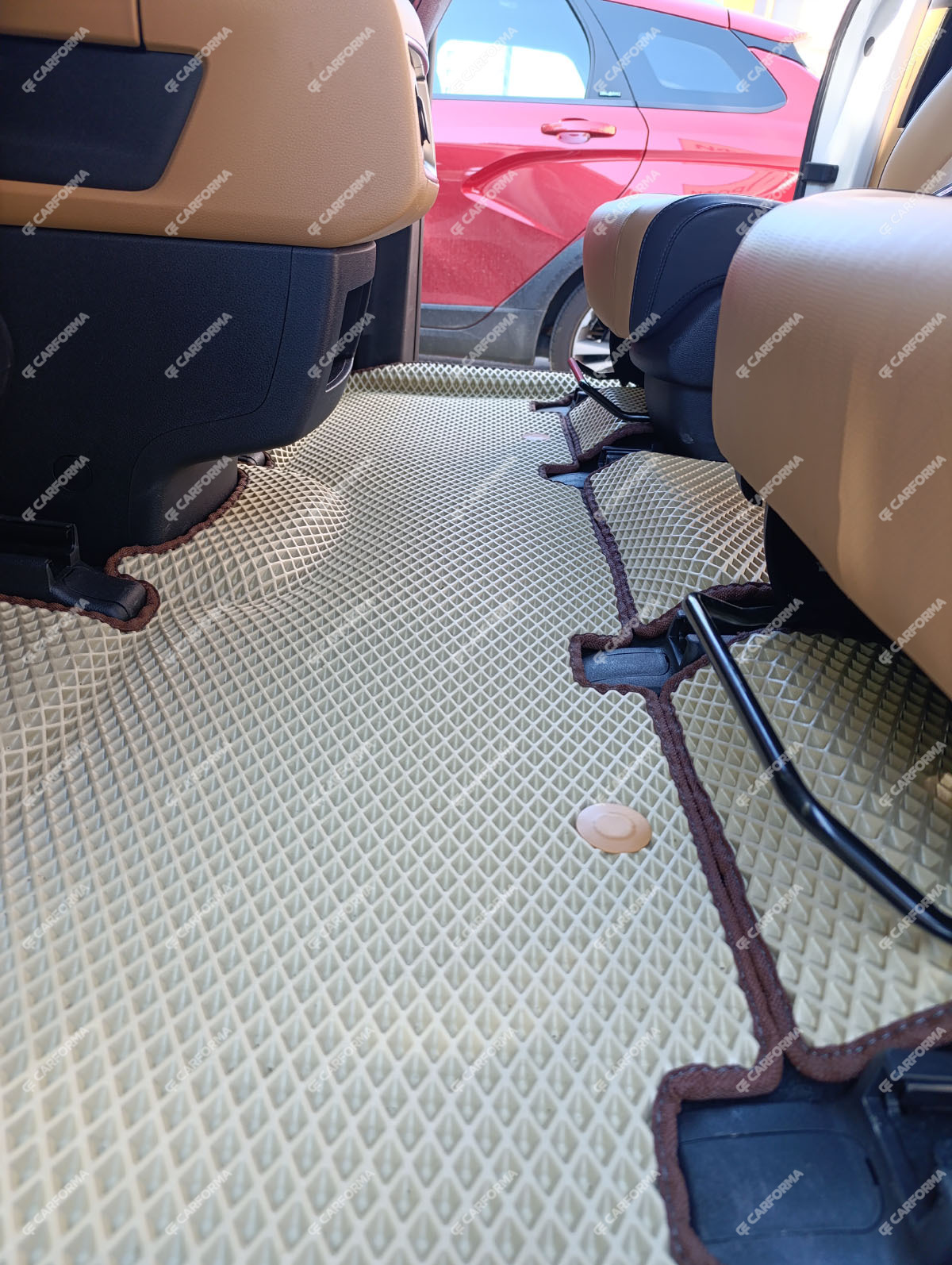 - Коврики идеально подходят для KIA Carnival IV 9 мест и учитывают все особенности этого автомобиля
